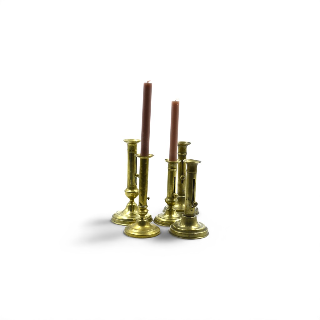 Il s’agit de bougeoirs en laiton patinés par le temps qui conservent toujours une belle brillance. Ils s’accommodent de bougies flambeaux pour pimper votre déco. Ils sont aussi très intéressants avec des fleurs séchées pour composer des centres de table originaux et économiques.