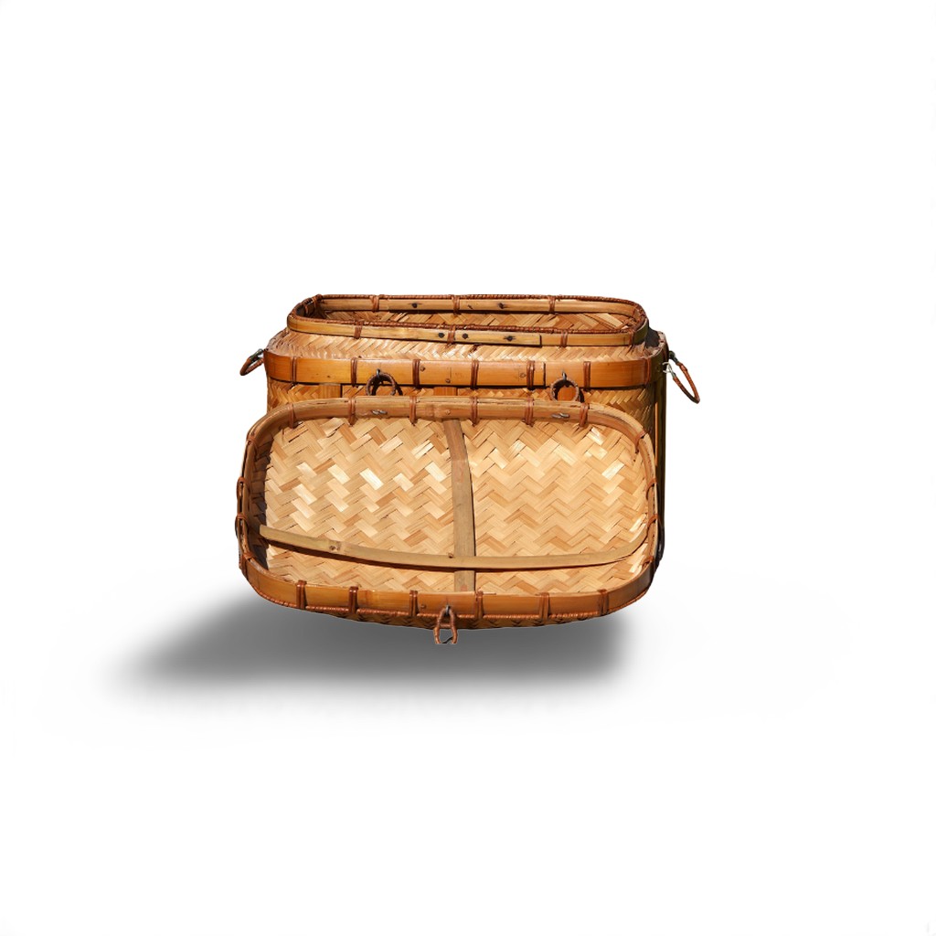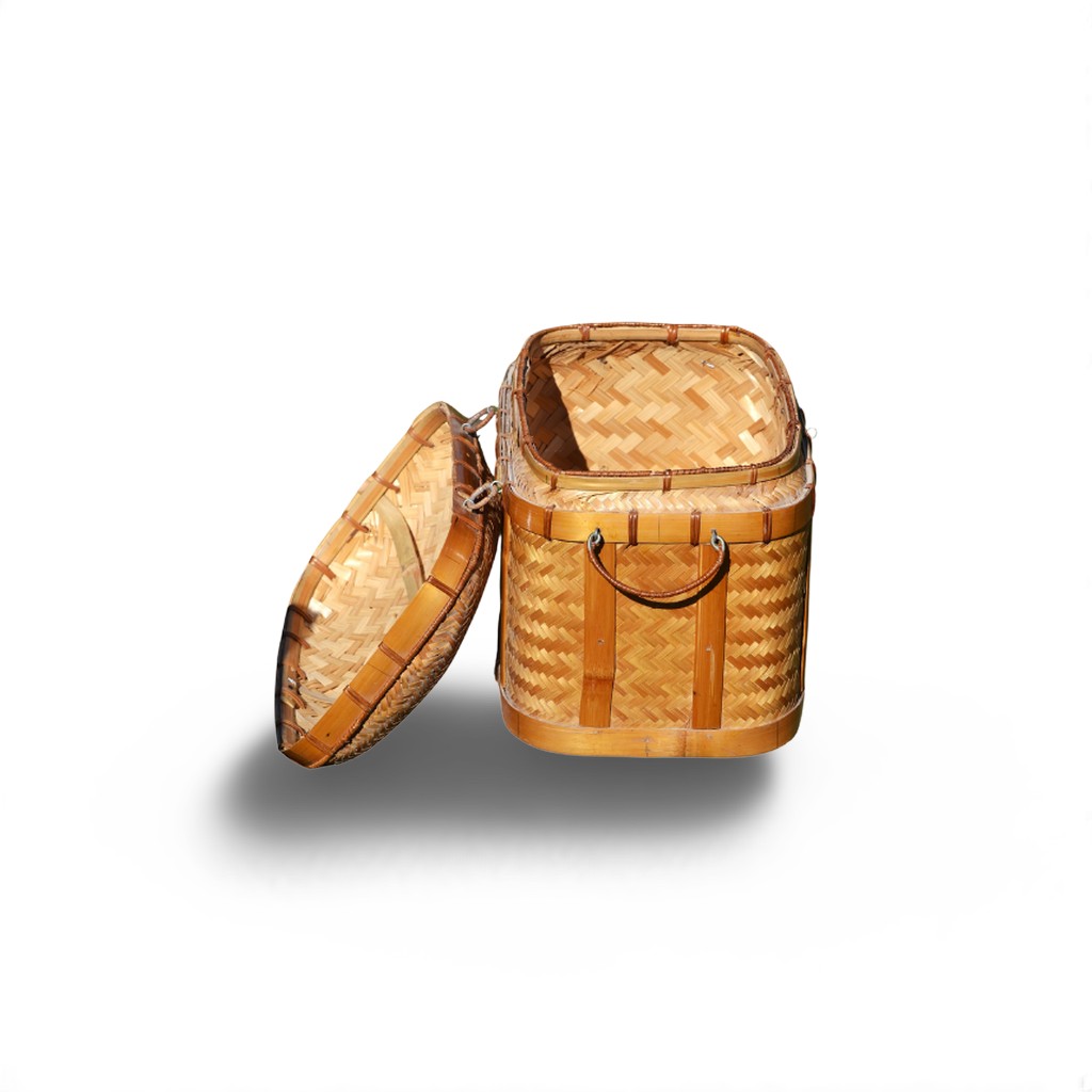 Location d’une valisette en paille tressée et bambou. Paille tressée et bambou sont typiques du goût des années 1950 pour les produits artisanaux en provenance d’Asie. Elle sera parfaite pour donner un souffle de voyage et d’authenticité à votre décor. Petite et profonde, elle peut servir à présenter des cartes, des cadeaux d’invités, voire des brassées de fleurs séchées.